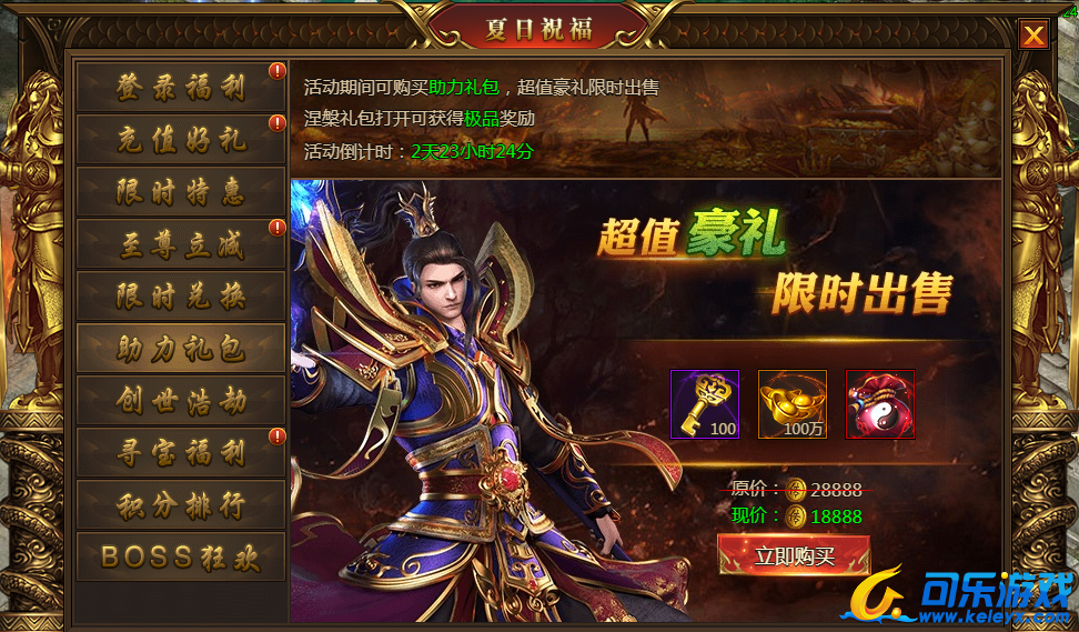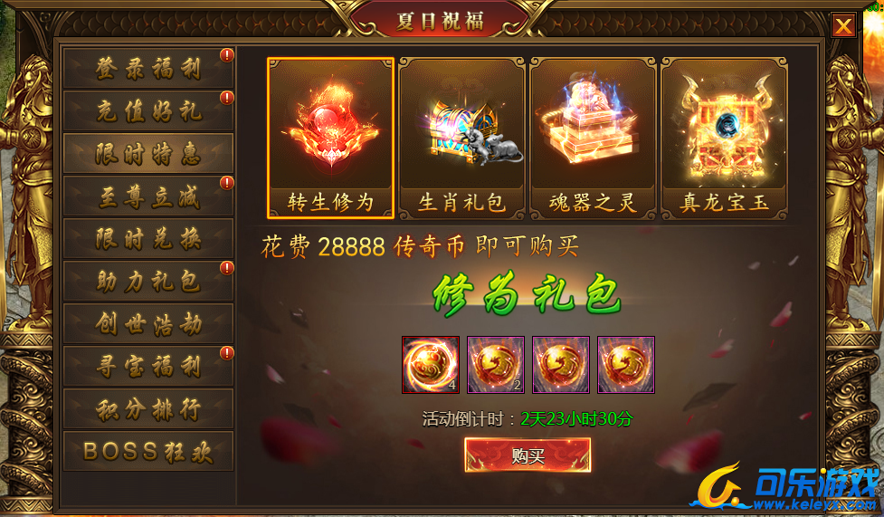 活动内容:活动期间可消耗传奇币购买特惠礼包