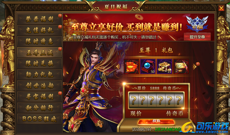 活动内容:活动期间满足至尊等级条件可消耗传奇币购买各种砍价礼包