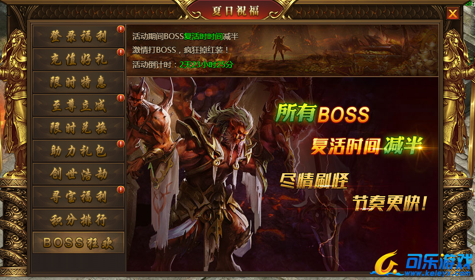 1.活动期间所有boss复活时间减半(跨服boss除外)