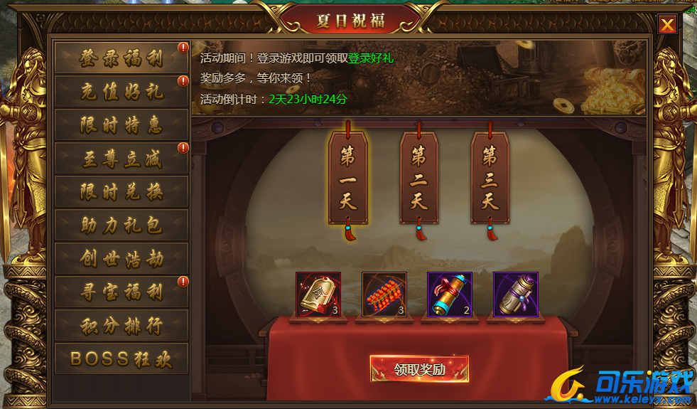 1. 活动期间玩家登录游戏即可领取登录奖励