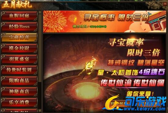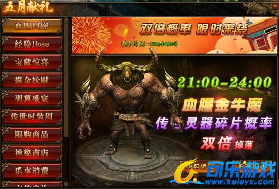 1.活动期间,玩家参与“多人副本-血腥回廊”,获得“传世灵器碎片”的概率翻倍;