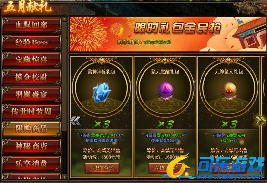 1.活动期间,玩家可在活动面板购买限购商品;(可翻页)