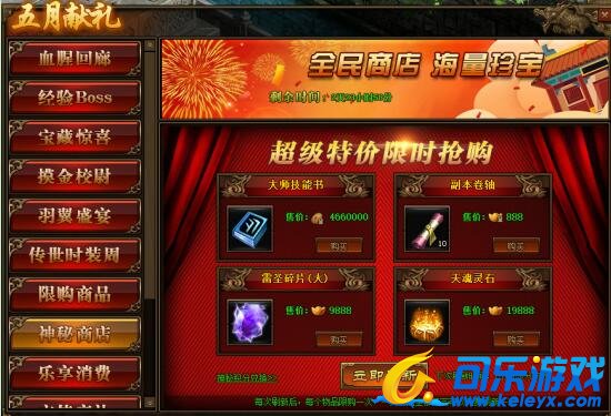 1.活动期间,玩家可在神秘商店中购买商品,商品可用金币,绑元,元宝进行购买;