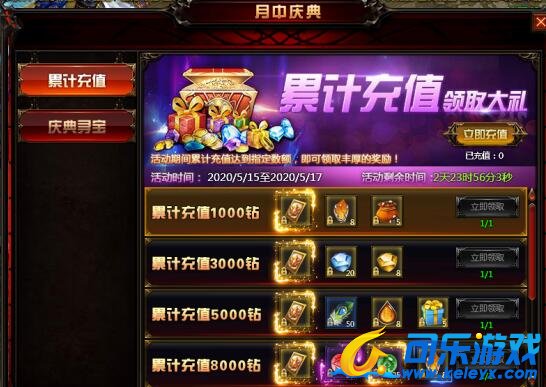 活动内容:玩家在活动时间内,累计充值达到一定钻石即可获得丰厚礼品,BOSS卡、时装等你来拿!