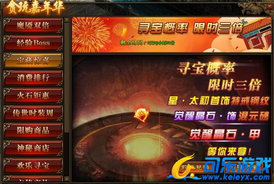 1.活动期间,玩家寻宝概率翻倍,极高几率获得星·太初首饰,传世灵器、传世灵甲,特戒钢纹,混元砂,传世灵器、传世灵甲,觉醒晶石·甲以及觉醒晶石·饰