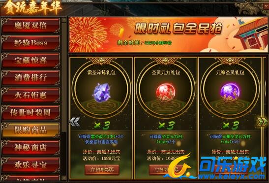 1.活动期间,玩家可在活动面板购买限购商品;(可翻页)