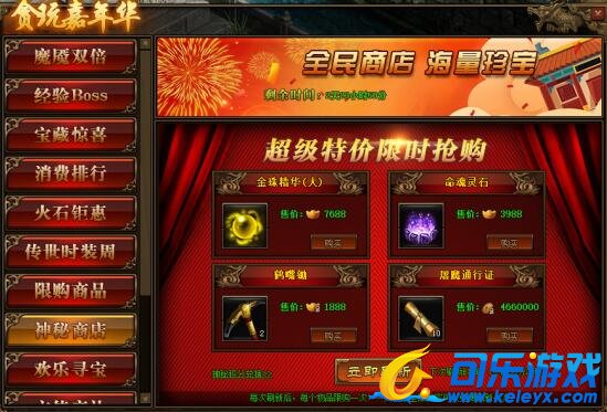 1.活动期间,玩家可在神秘商店中购买商品,商品可用金币,绑元,元宝进行购买;