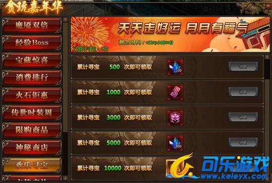 1.活动期间,玩家累计寻宝次数满足要求,可以领取本职业星石、高级仙装、仙装灵器等相应奖励;