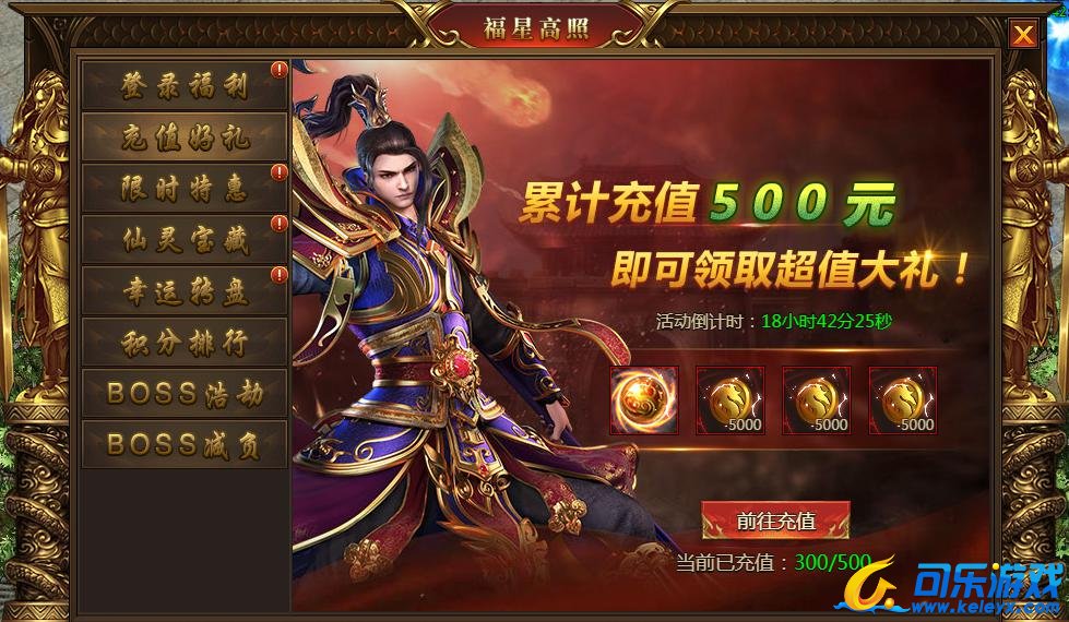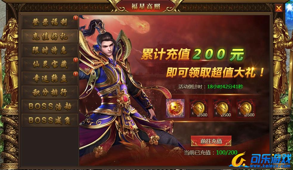 活动内容:活动期间充值可获得幸运转盘次数,消耗转盘次数和传奇币投入转盘可获得高额回报