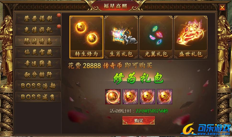 活动内容:活动期间消耗传奇币即可购买特惠礼包