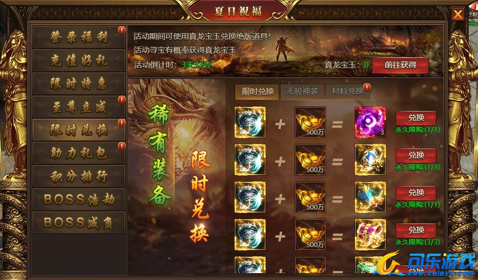 活动内容:活动期间可使用真龙宝玉兑换绝版道具