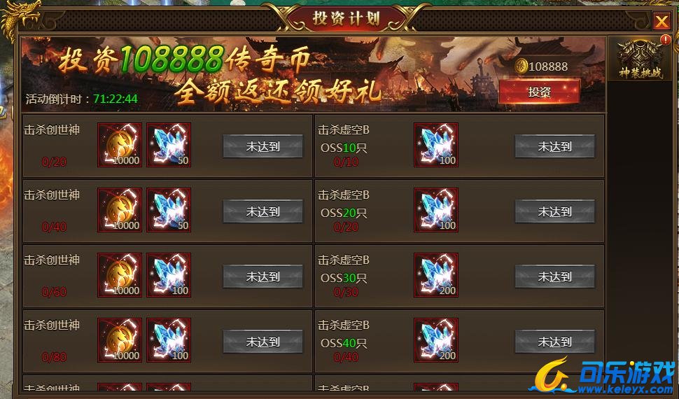 1.活动期间可以购买投资计划,完成计划目标后可获得传奇币和道具奖励