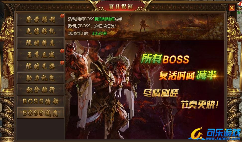 1.活动期间所有boss复活时间减半(跨服boss除外)