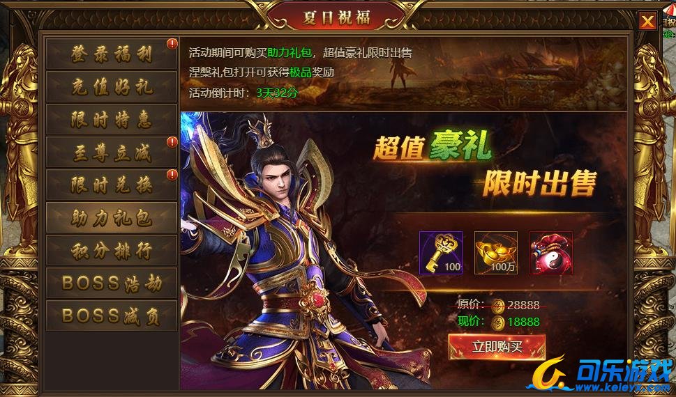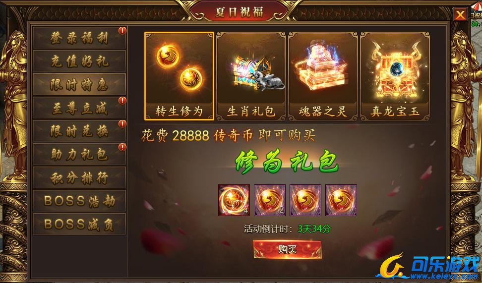 活动内容:活动期间可消耗传奇币购买特惠礼包