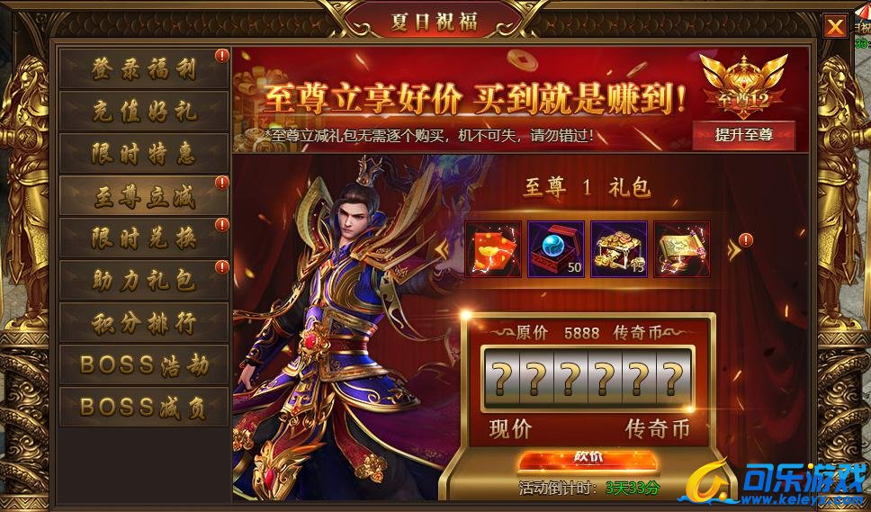 活动内容:活动期间满足至尊等级条件可消耗传奇币购买各种砍价礼包