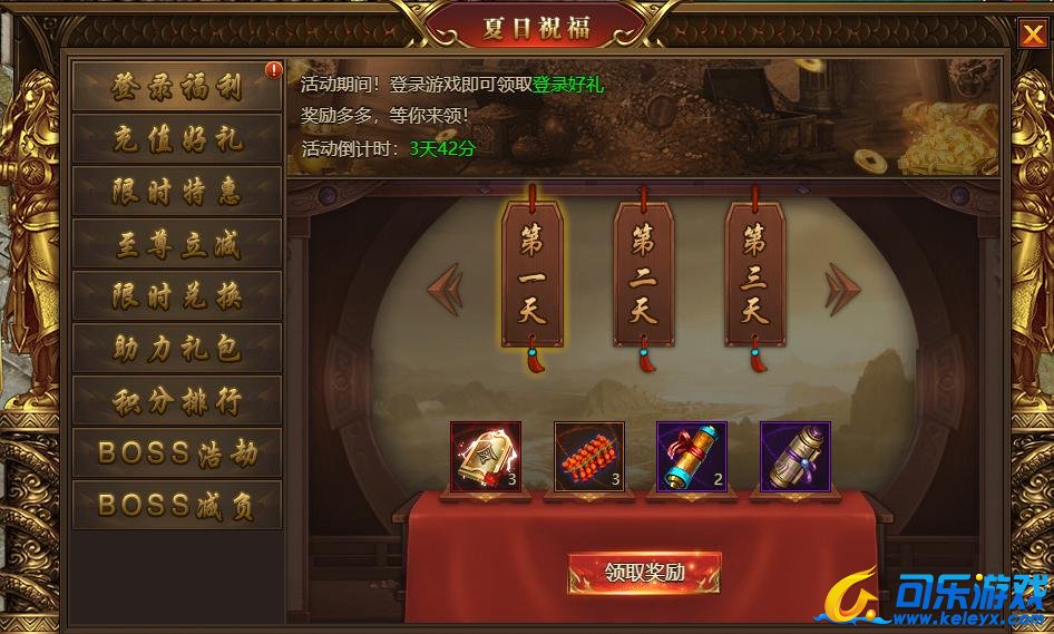 1. 活动期间玩家登录游戏即可领取登录奖励