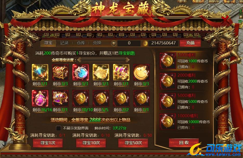 1.活动期间可以在神龙宝藏中抽取各种稀有道具、装备和传奇币