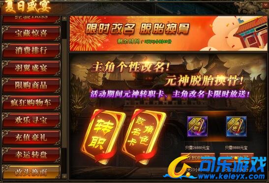 1.活动期间,玩家可在活动面板中购买元神转职卡,让元神脱胎换骨;