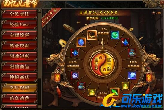 1.活动开启后奖池内默认存入88888元宝,每抽奖1次可使奖池内增加100元宝