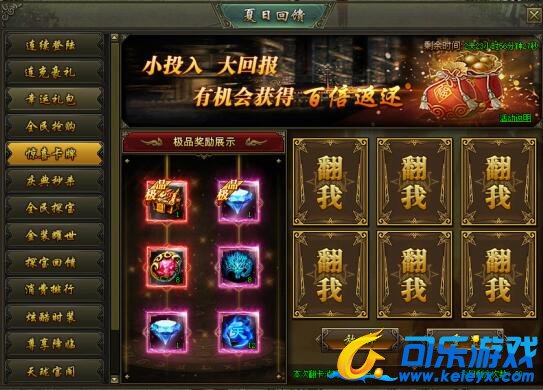活动说明:活动期间,消耗钻石开启卡牌可获得超级奖励,更有几率翻到超级大奖