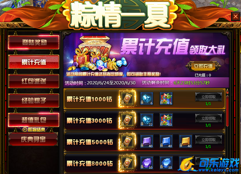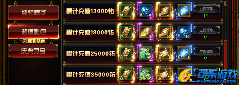 活动内容:玩家在活动时间内,累计充值达到一定钻石即可获得丰厚礼品,超值奖励等你来拿!