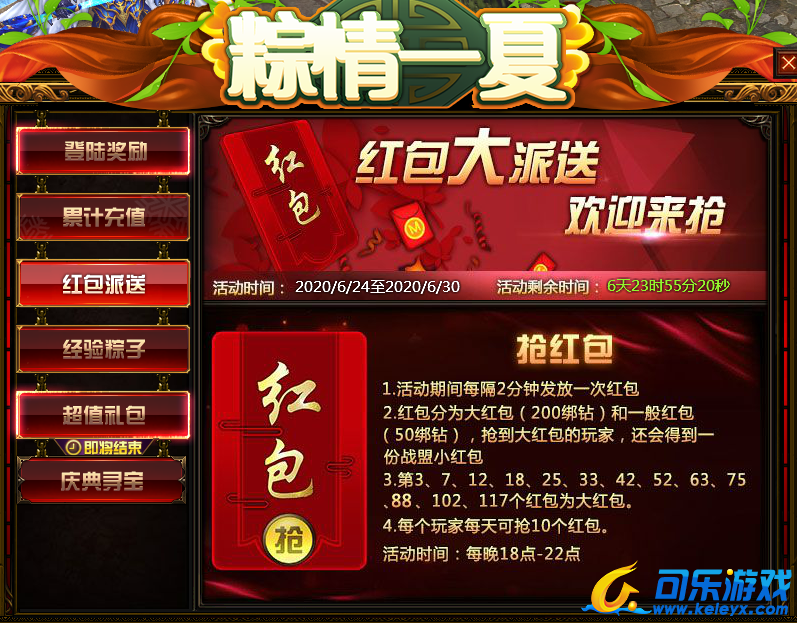 活动内容:玩家在活动期间,全服玩家同时抢金秋红包,每人每天最多抢10次,还有大大红包等你来抢!