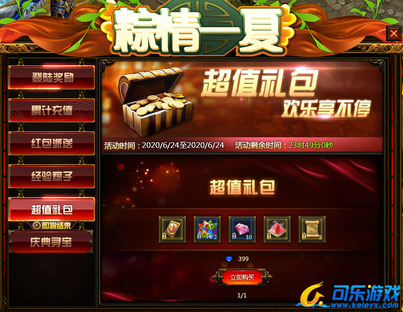 活动内容:活动时间内,玩家可在超值礼包内查看每日购买内容,超值礼包每日仅可购买一次且仅限当日购买。机不可失,赶快来购买吧。