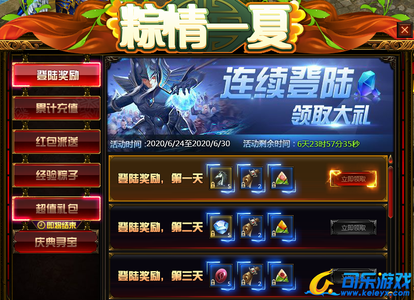活动内容:活动时间内,玩家每天登陆游戏即可获得丰厚奖励。