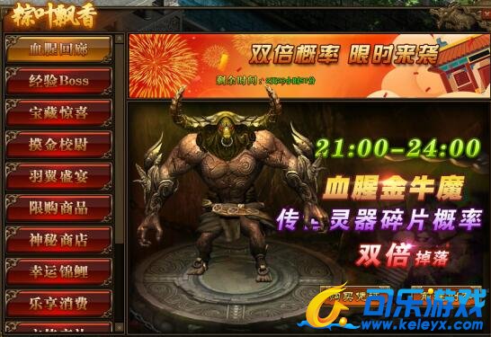 1.活动期间,玩家参与“多人副本-血腥回廊”,获得“传世灵器碎片”的概率翻倍;
