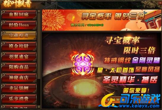 1.活动期间,玩家寻宝概率翻倍,极高几率获得星·太初首饰,传世灵器、传世灵甲,特戒钢纹,仙元石、碧落星空,传世灵器、传世灵甲,金刚灵髓、金刚精华,至尊风扬阵法以及圣灵精华(撼岳)