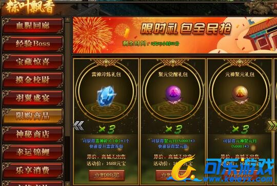 1.活动期间,玩家可在活动面板购买限购商品;(可翻页)