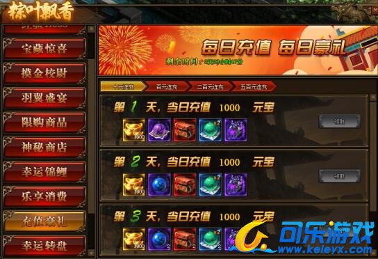 2.连续充值达到3天,奖励翻倍领,更可领取暗影晶石、地狱晶石、随机7级阵法宝珠、雷霆装备等贵重物品