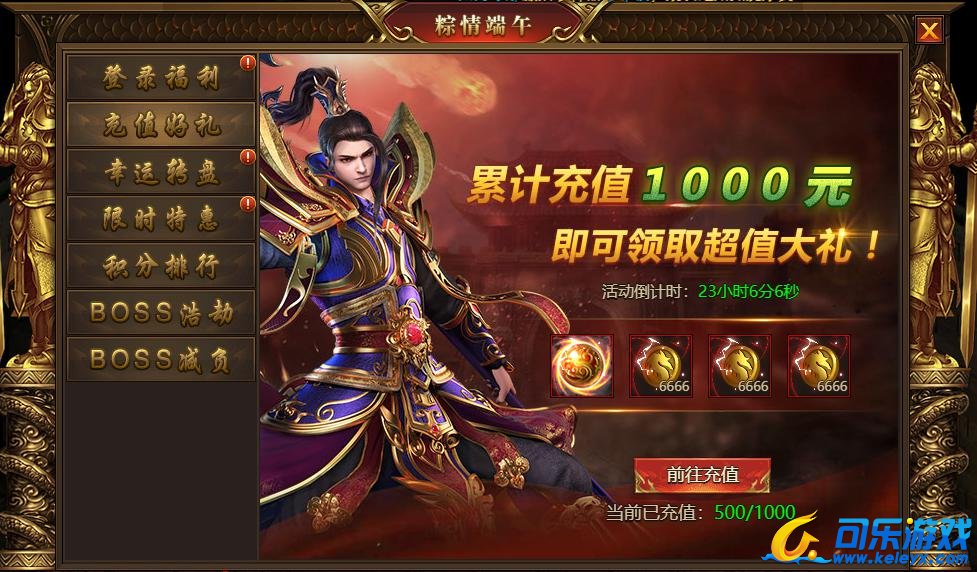 活动内容:活动期间充值可获得幸运转盘次数,消耗转盘次数和传奇币投入转盘可获得高额回报