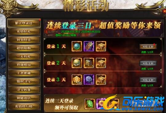 活动说明:活动期间,每天登陆即可领取奖励,连续三天更有额外奖励