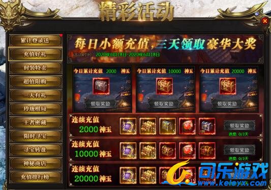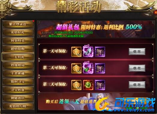 活动说:每日充值可以领取充值宝箱,连续三天充值更有额外极品奖励