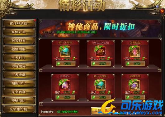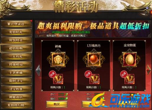 活动说明:各种稀有道具限时购买,同时送大量神王币