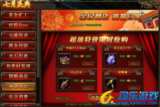 1.活动期间,玩家可在神秘商店中购买商品,商品可用金币,绑元,元宝进行购买;