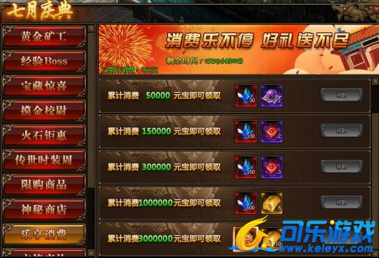 1.活动期间,玩家累计消费满足要求,可以领取境界修为、本职业星石、传世灵戒等相应奖励;