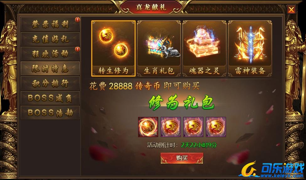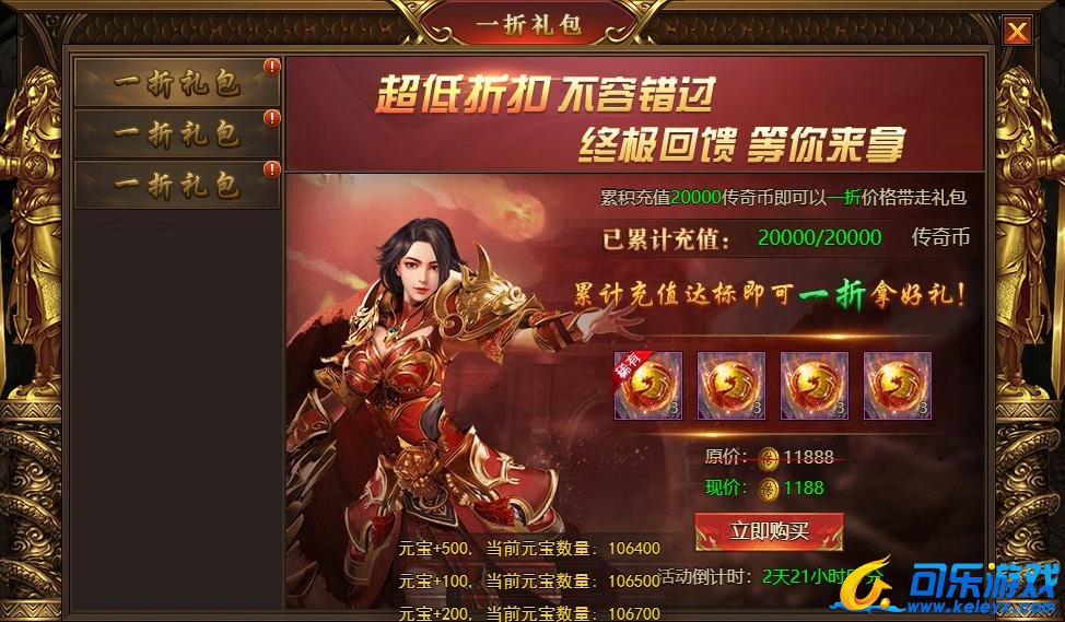 活动内容:活动期间消耗传奇币即可购买特惠礼包