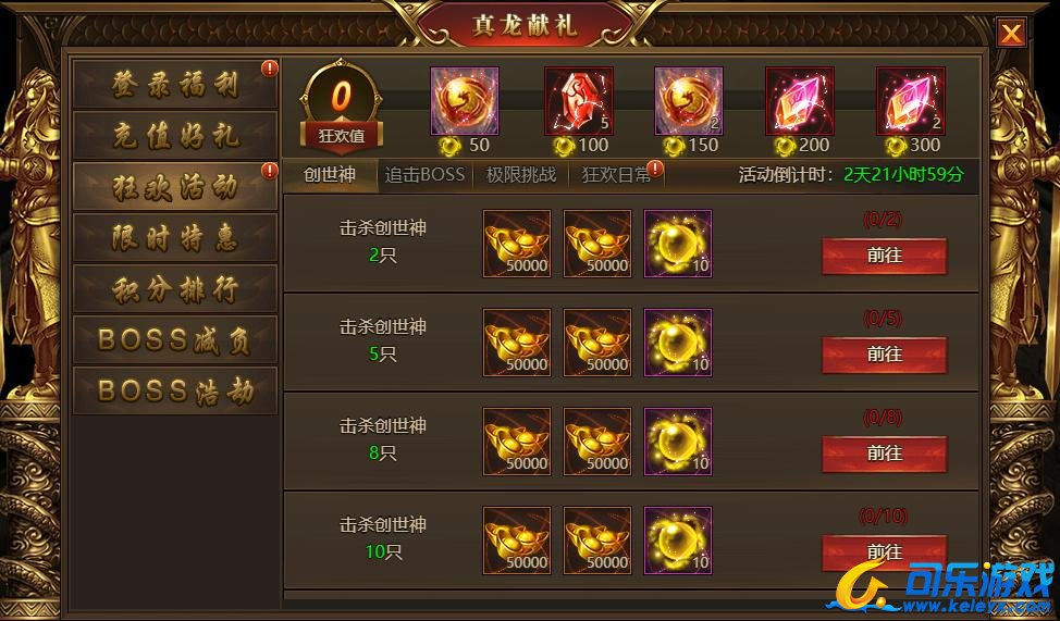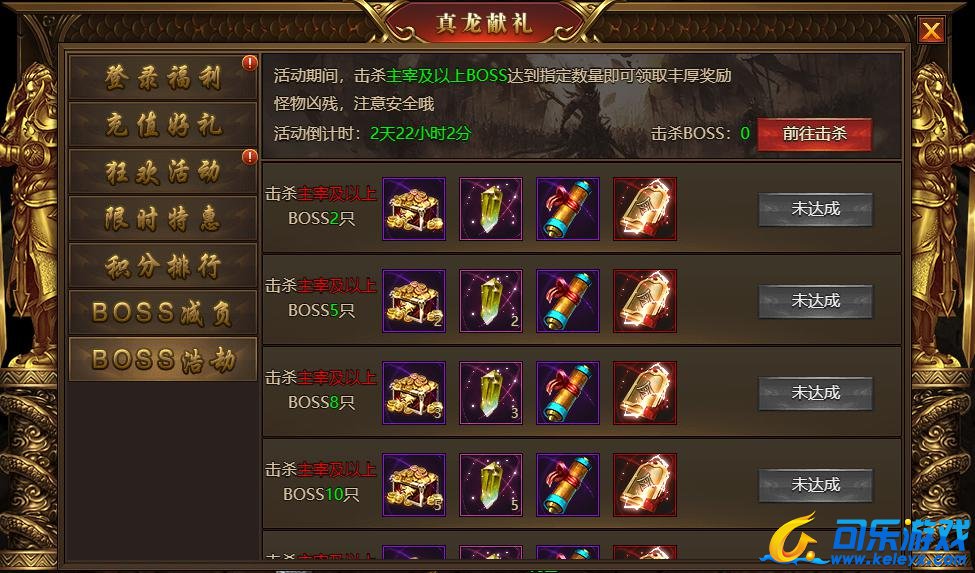 活动内容:活动期间击杀主宰及以上BOSS达到指定数量即可领取奖励
