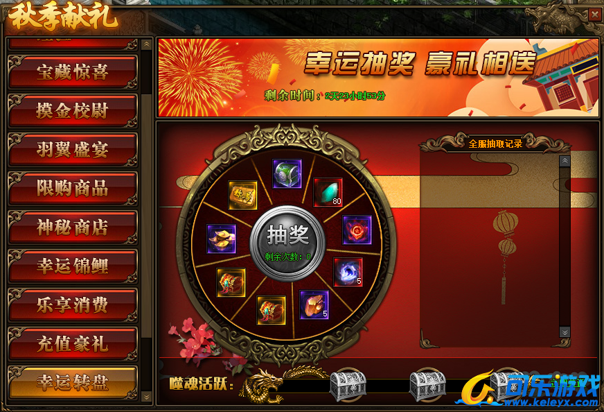2.活动期间内,根据抽奖次数可用于抽取转盘内奖励道具,奖励道具不会重复获得;