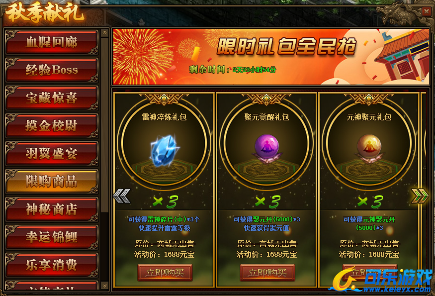 1.活动期间,玩家可在活动面板购买限购商品;(可翻页)