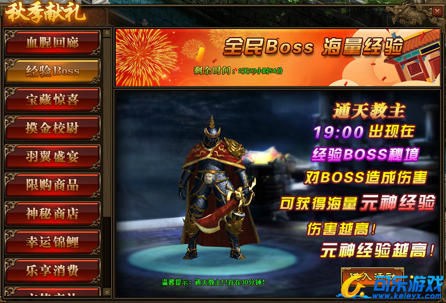 2.活动中,玩家对BOSS造成的伤害,将在活动结束后转换成元神经验并发放;
