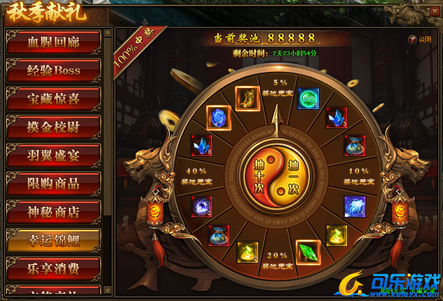 1.活动开启后奖池内默认存入88888元宝,每抽奖1次可使奖池内增加100元宝