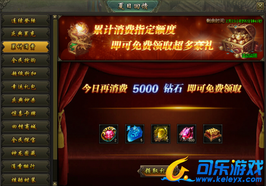 活动说明:活动期间,每日累计消费钻石数达到指定额度可领取超多豪礼
