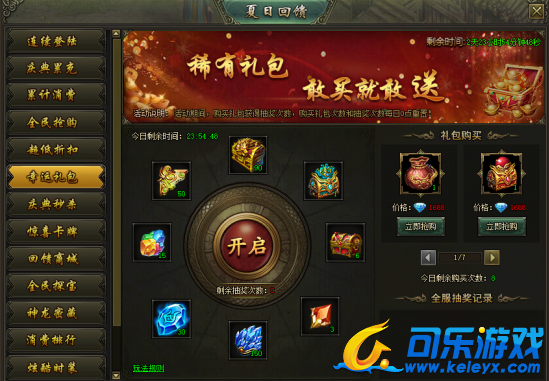 活动说明:活动期间,购买礼包获得抽奖次数,购买礼包次数和抽奖次数每日0点重置。