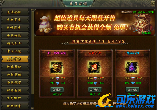 活动说明:活动期间,超值道具每天限量开售,购买更有机会获得全额免单