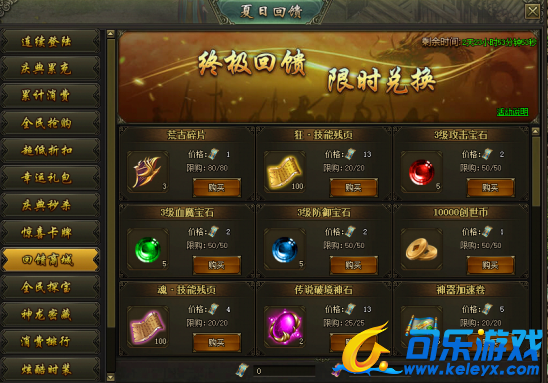 活动说明:活动期间,可使用充值回馈卷和消费回馈卷兑换大量奖励
