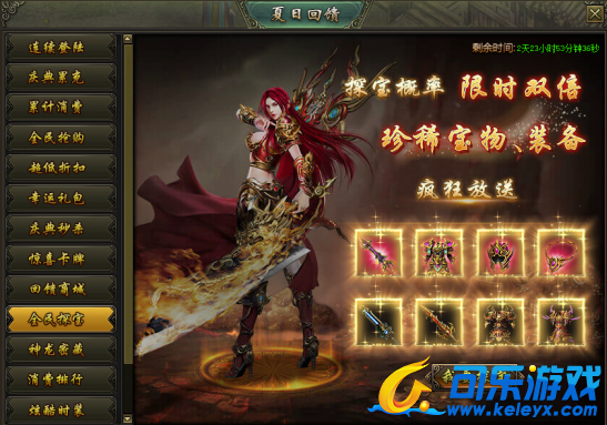 活动说明:活动期间,龙之宝藏产出圣装的概率限时翻倍,极品圣装、珍稀宝物大放送!