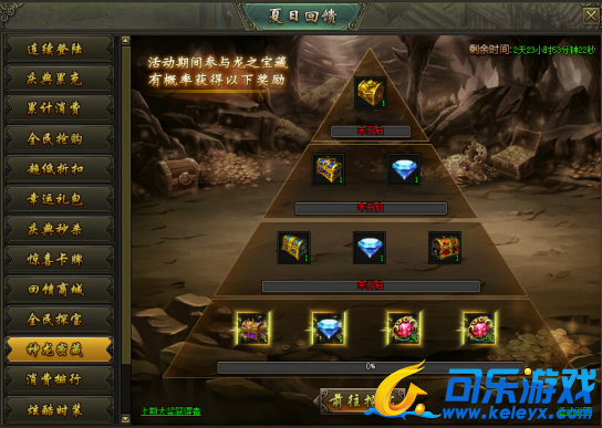 活动说明:活动期间,参与龙之宝藏则有几率额外获得神龙密藏的物品